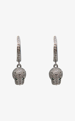 Glint in gold or smolder in silver in these maximalist huge hoops that feature crystal jewels detailing, a multi dimensional panther, and piercing green gemstone eyes.