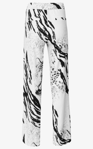 Roar with confidence and express your fierce nature in a pair of pants as bold as you are. Featuring a relaxed fit, a high waist with elastic band, side pockets, back pocket detailing, and a stunning tiger and leopard mixed print throughout.