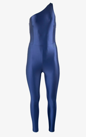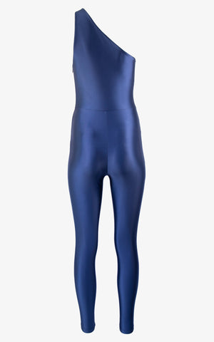 One for the starry nights, and made to dance, this figure-hugging jumpsuit features a skin-tight silhouette, long pant legs, and one-shoulder asymmetric sleeveless strap.