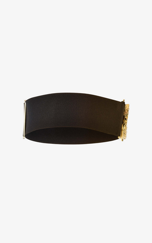 Elevate any outfit with this belt featuring an adjustable black elastic band, large gold decal, and hidden gold closure. This beauty comes in black or gold. Style this with our Chained in Power skirt.