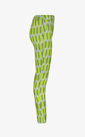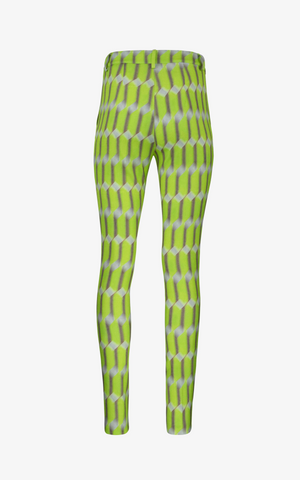 Inspired by the bright power that comes from within and radiates throughout the soul when one rises above, these pants feature a slim-fitting trouser, a high waist, button and zip closure in the front, front pockets, and belt loops all in a bold geometric pattern.