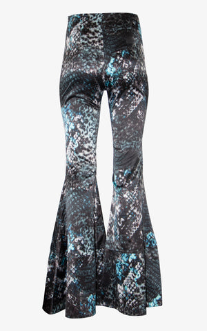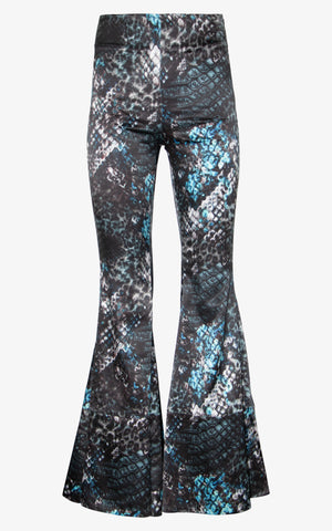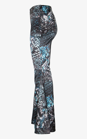 A pant that brings a flare for the dramatic to any outfit and features a form sitting high-waist, billowing flare starting at the knee and a stunning animal print throughout in two unique color ways.