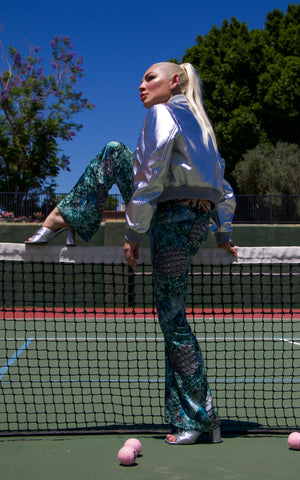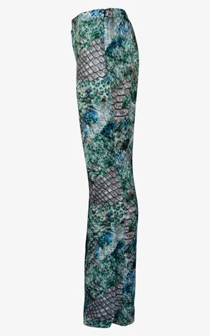 Combining the bold allure of Carolina Couture prints with the power and calming force of the ocean, these Poseidon pants feature a high waist, relaxed silhouette, and flared legs.